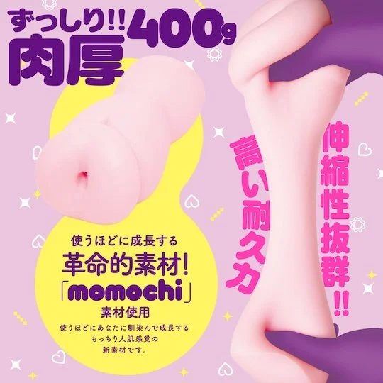 The puffy pussy is exaggerated with a nice large bump of material. There is a small crease on the top to indicate that, yes, this is supposed to be a vagina. However, the front orifice is not anatomically decorated. Also, there is a cute little butt around the back. I didn’t notice this until I got it out of the package, but it was a nice surprise. The Mori-Man is pretty soft, as far as materials go. I believe it’s the softest that I have in my collection right now. As the judges on a popular blacksmithing competition show might say, the grip fits well to the contours of my hand. It has a significant flop factor if you’re holding it by one end, for reference. It’s almost like it was made to have something hard go inside it. Speaking of which . . .